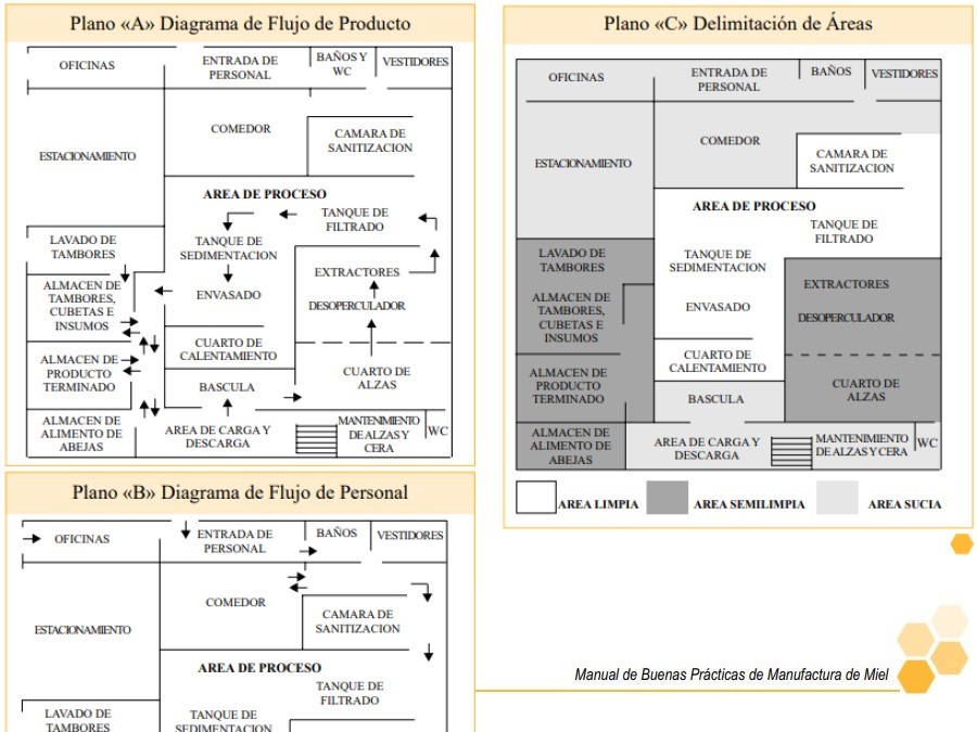 Manual realizado por SAGARPA Y SENASICA en donde se abordan diversos temas de la manufactura de miel, como las instalaciones y el proceso para la extracción y envasado de miel, equipos e implementos, programas de eliminación de desechos, lucha contra plagas e higiene del personal, procedimiento de operación estándar de sanitización, etiquetado de la miel, entre otros.