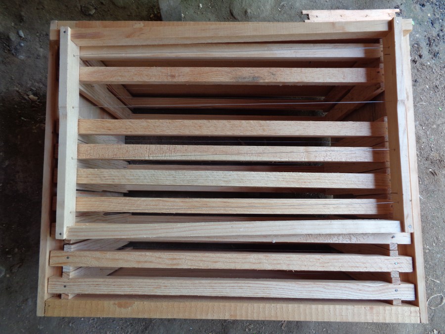 Material de muy buena calidad. Madera de pino. Material parafinado. Incluye cuadro de alza y 10 bastidores de alza.