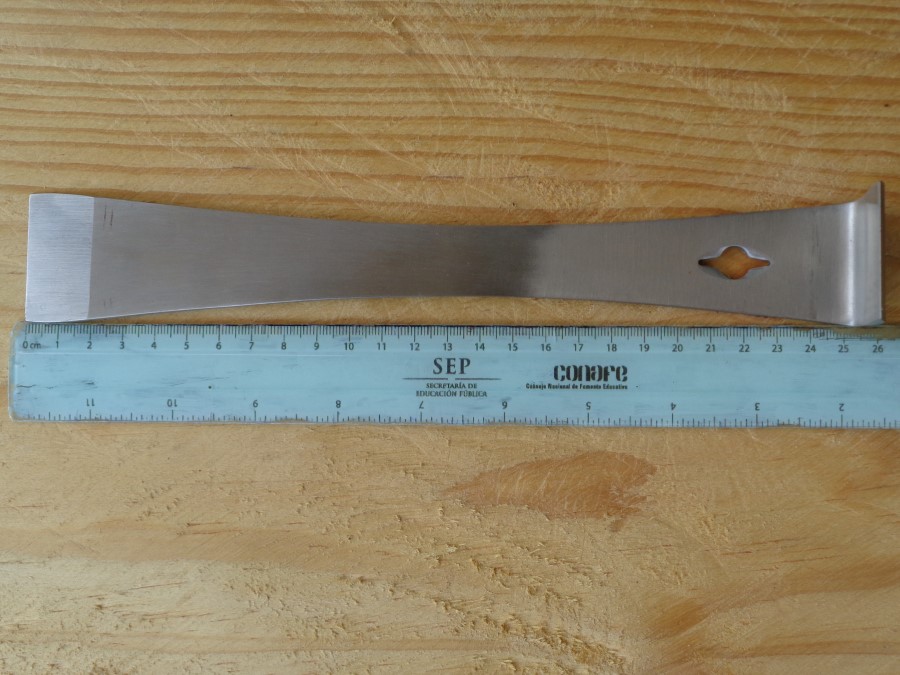 Material de muy buena calidad. Madera de pino. Lámina de acero inoxidable.