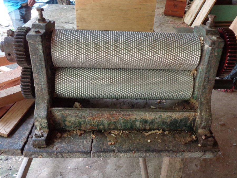 Maquilado de cera con estampadora de rodillos manual.