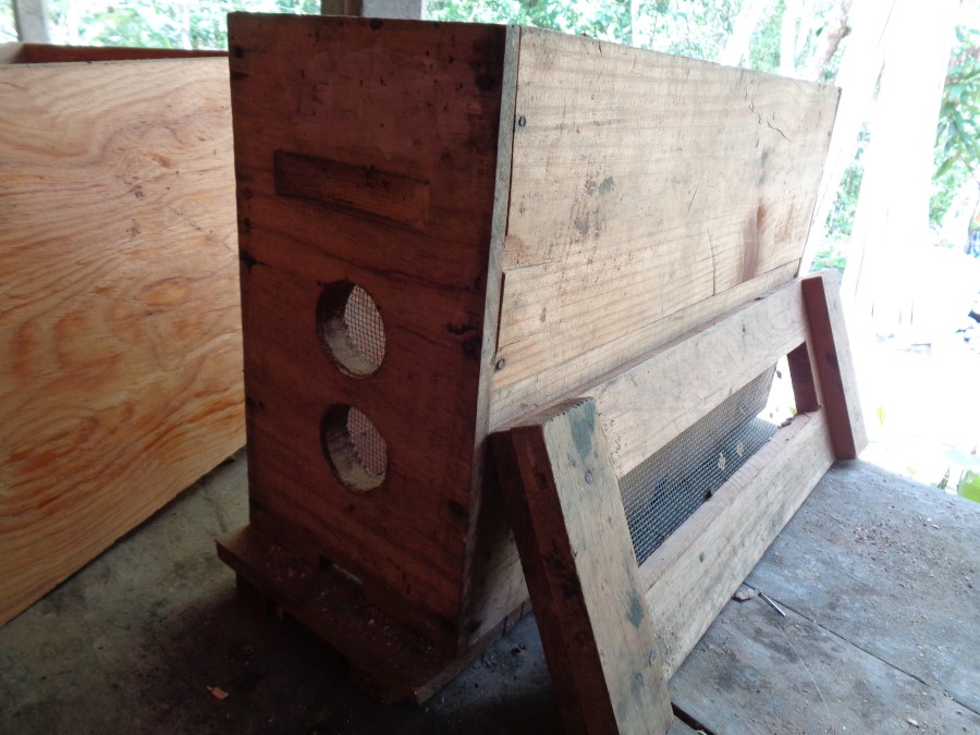 Material de muy buena calidad. Madera de pino. Material parafinado. Incluye cuadro de cámara de cría y 10 bastidores.